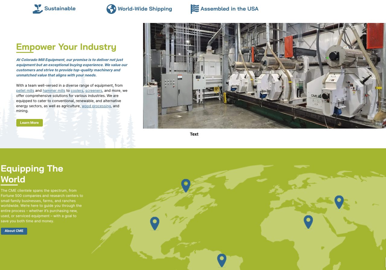 When Colorado Mill Equipment (CME) approached us to elevate their online presence, we were tasked with transforming its website into a user-centric platform and updating the company branding. As a leading provider of milling and screening solutions, CME aimed to showcase its diverse range of machinery and streamline the client experience. Our strategic redesign broke down the technical aspects of the machinery into an intuitive format, ensuring an effortless user experience.