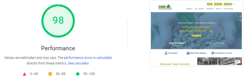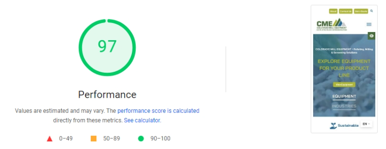 As you can see, Colorado Mill Equipment’s website ranks high for desktop and mobile. We continue to monitor the speed results to improve the speed and the Google ranking of this site.