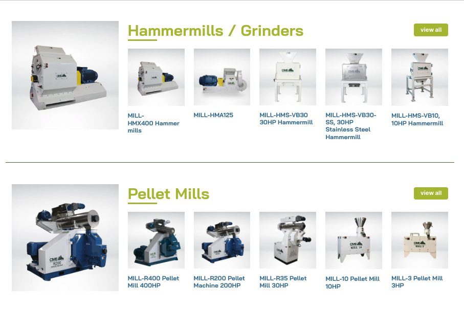 - Custom Feed: To enhance user experience, we’ve implemented custom feeds on industry and application pages. On the previous site, “recommended products” feeds were random lists. Now, the feeds display compatible machines for each product. For example, instead of a random list of pellet mills, the feed now showcases machines that complement the specific pellet mills a customer is viewing on the site.